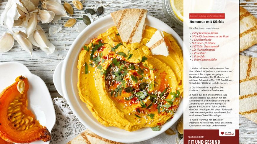 Besonders lecker zu frischem Fladenbrot: Hummus mit Kürbis