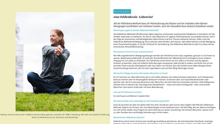 Was macht eigentlich eine Feldenkrais- Lehrerin? Wir haben bei Kathryn Hume-Cook nachgefragt.